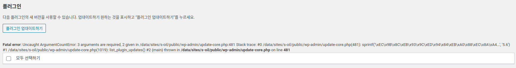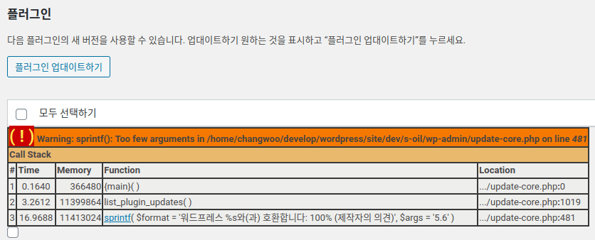 번역에서 % 서식 표시 미스로 인해 PHP 7.4이하에서는 경고, 8.0부터는 무려 에러를 낸다.