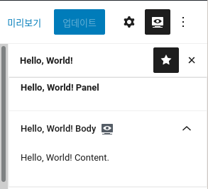 그리고 해당 메뉴를 클릭하면 좌측 사이드바에 나올 내용은 PluginSidebar를 이용해 작성한다.