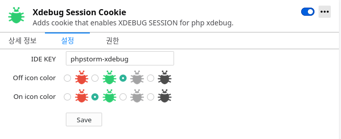 - 브라우저에서 ON/OFF를 결정하는 방법은 세션 쿠키를 보내는 방법이다. 이때 사용하는 설정이 idekey. 이 값을 phpstorm-xdebug로 정했다. 디버깅은 VSCode 뿐만 아니라 PhpStorm에서도 번갈항 쓰는 데다, PhpStorm이 더 주력이기 때문이다.