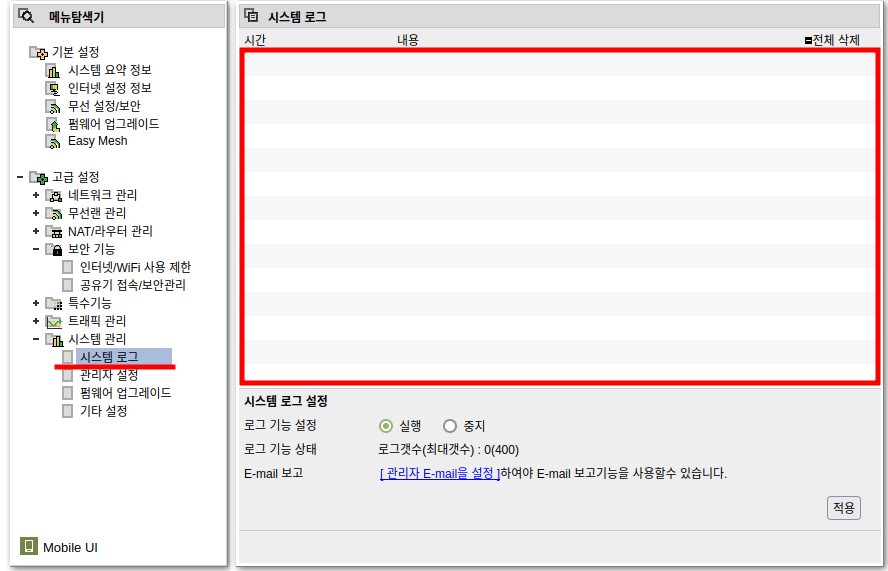 우선 아래 그림처럼 공유기 관리자 로그를 복사해 파일로 만듭니다.