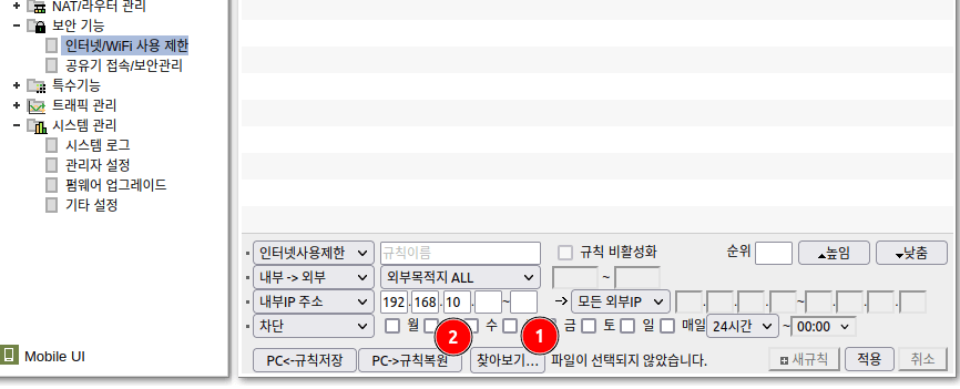 그런데 UI가 조막만해서 IP를 일일이 관리하고 차단하기가 너무 어려웠어요. 오호라? UI를 잘 보니 규칙을 파일로 백업하는 기능이 있었지 뭡니까? 이것으로 .cfg라는 파일을 생성하는 것을 확인하였습니다.